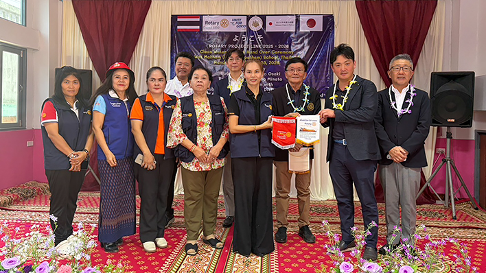 タイのワットマカーム校へ浄水器を寄贈し、現地にて贈呈式を執り行いました。本事業は七尾みなとロータリークラブ(第2610地区)との合同プロジェクトとして実施され、地区の垣根を超えた連携により、子どもたちへ安全な飲料水を提供する環境を整備しました。贈呈式で出会った生徒たちの輝く笑顔は、奉仕の意義を再確認させてくれる貴重な糧となりました。